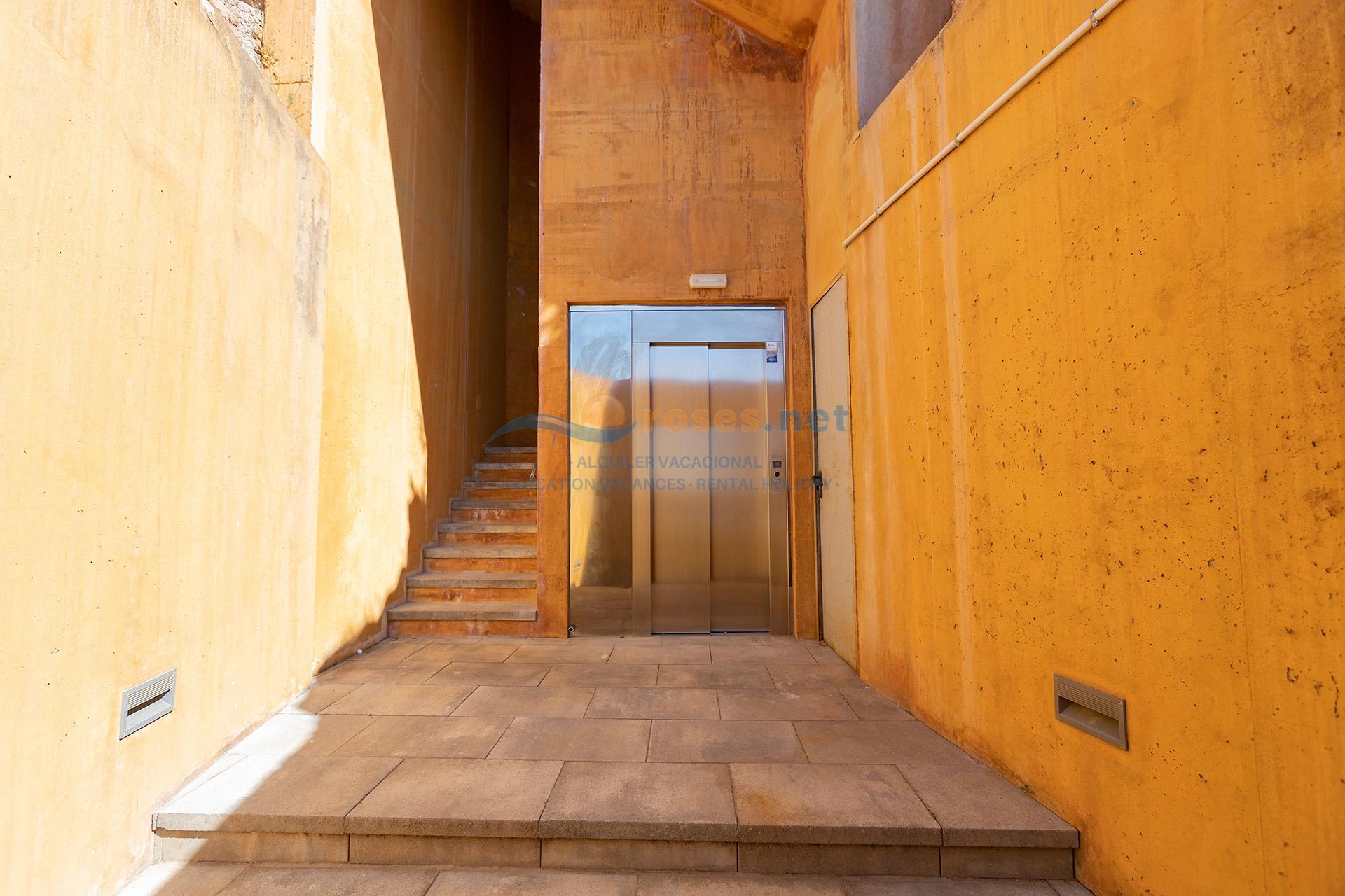 There is an elevator to the pool area, after which there are stairs.
